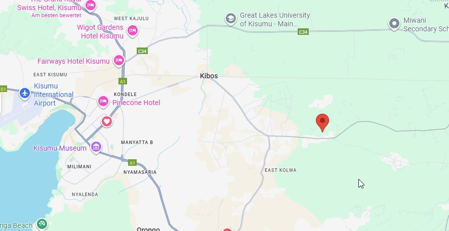 Wir betreiben seit Sommer 2024 eine eigene Farm am Stadtrand von Kisumu, mit 3.500m² Ackerland. Man sieht am Bild unten den Wasserturm, der mittels Photovoltaik vom Brunnen gespeist wird. Ganz hinten in der Mitte sieht man das Haus für den Wächter des Feldes, gleichzeitig Geräteschuppen und Zwischenlager für die Ernte. Der Anbau ist rein biologisch, ohne Kunstdünger