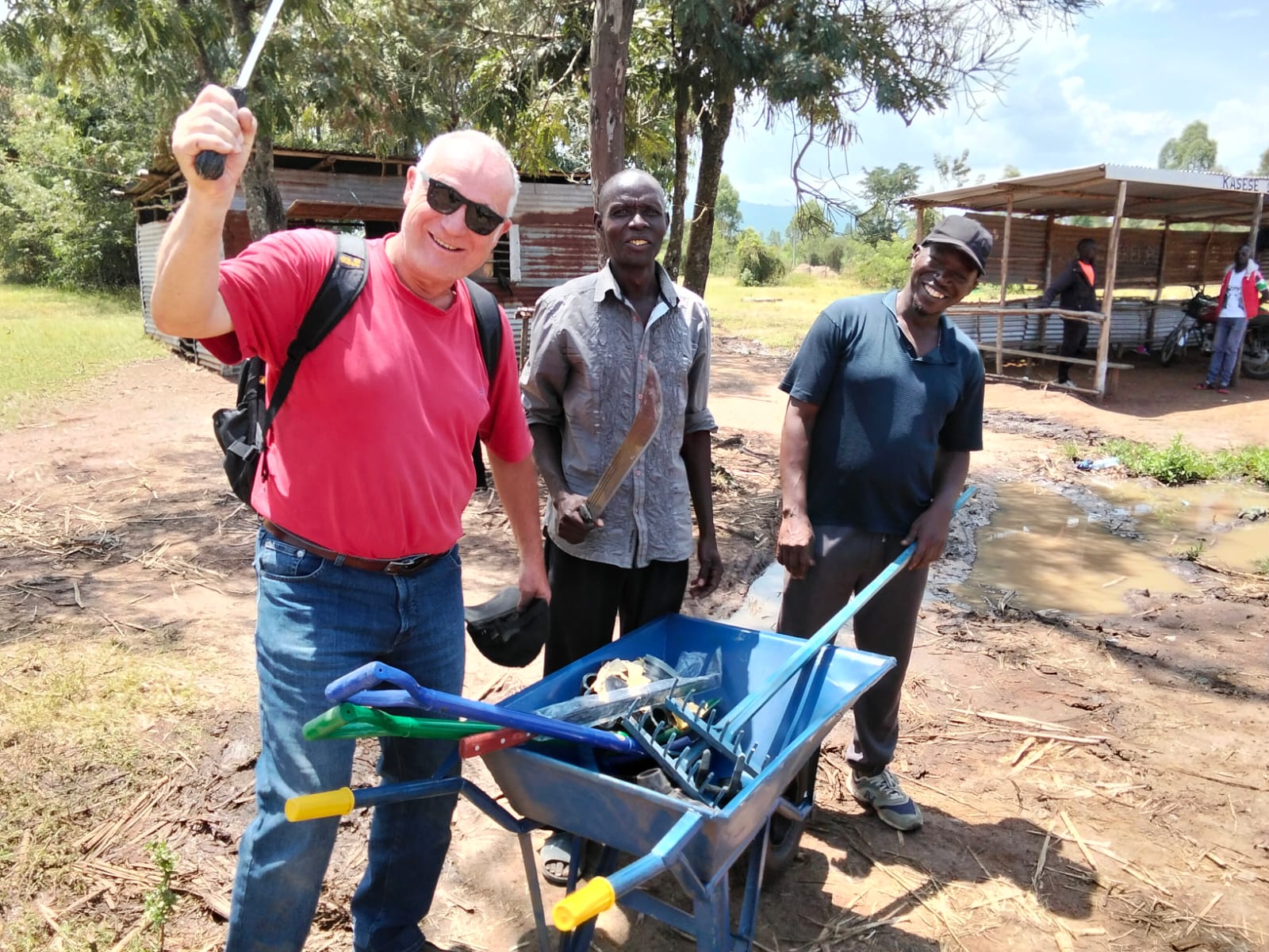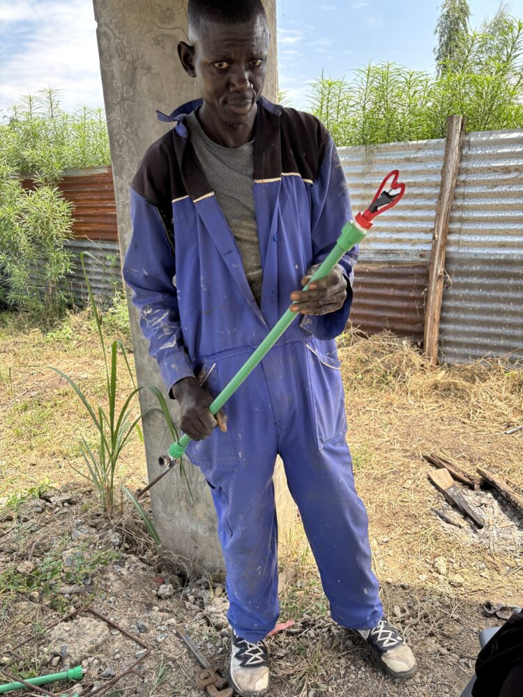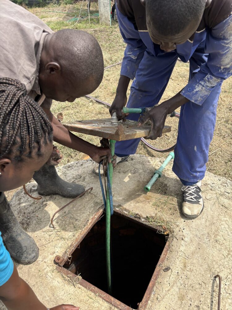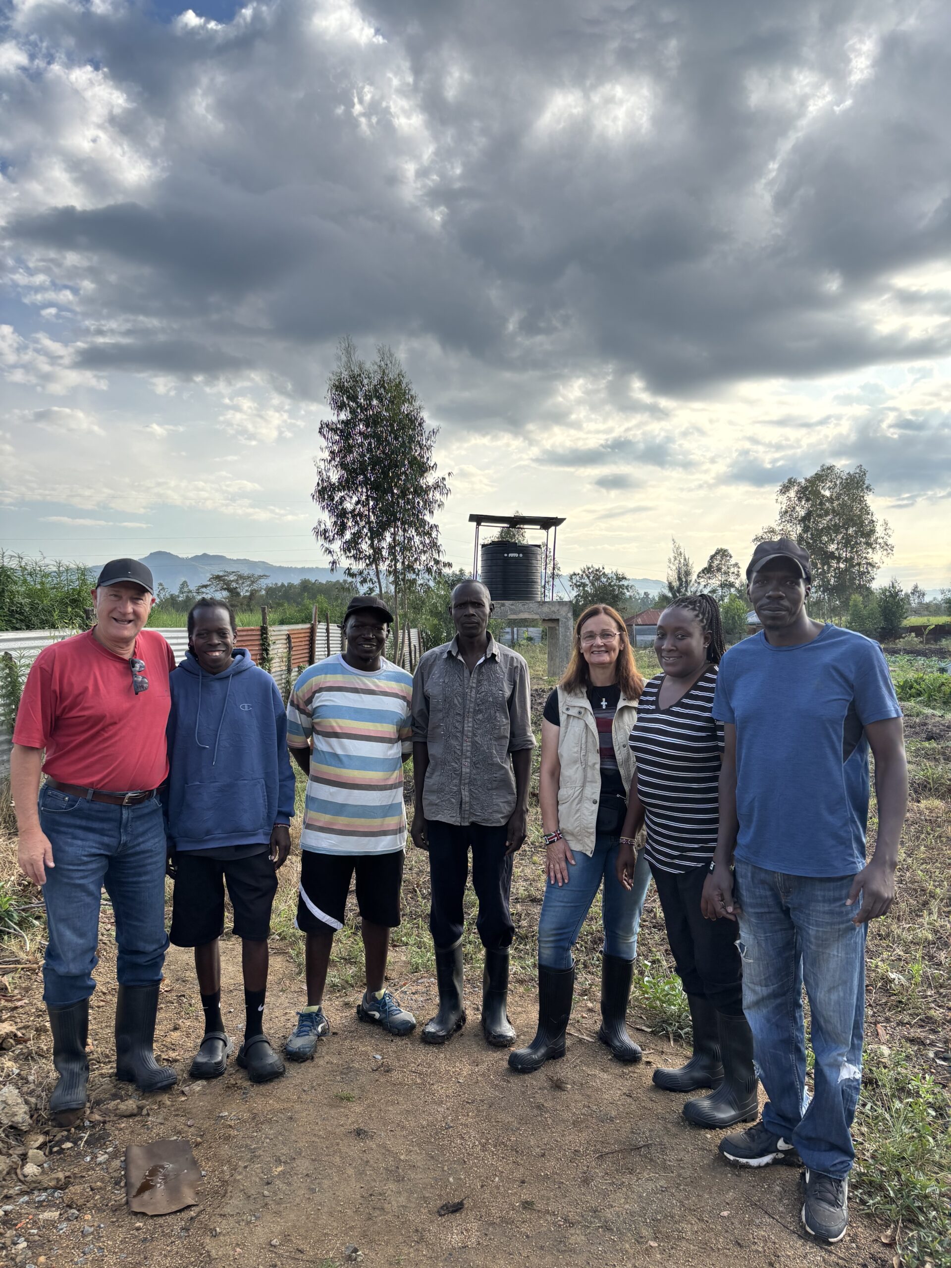 Wir betreiben seit Sommer 2024 eine eigene Farm am Stadtrand von Kisumu, mit 3.500m² Ackerland. Man sieht am Bild unten den Wasserturm, der mittels Photovoltaik vom Brunnen gespeist wird. Ganz hinten in der Mitte sieht man das Haus für den Wächter des Feldes, gleichzeitig Geräteschuppen und Zwischenlager für die Ernte. Der Anbau ist rein biologisch, ohne Kunstdünger